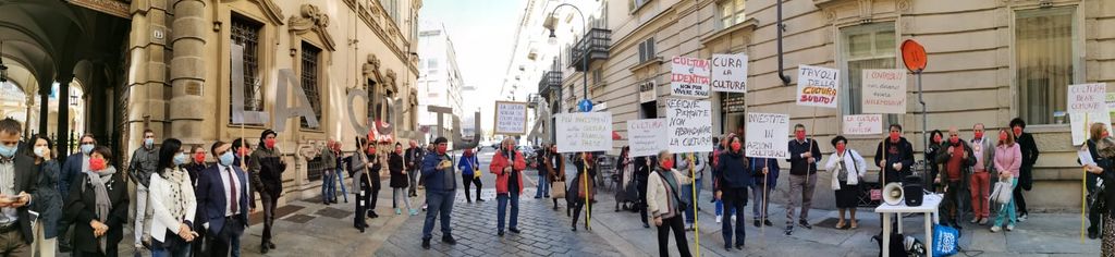 “Il Tavolo della Cultura, organismo previsto dalla Legge Regionale 11/2018, ha interrotto le sue attività a febbraio 2020 a causa dell’emergenza Covid 19. Da allora siamo fermi”, spiegano gli esponenti del Comitato Emergenza Cultura Piemonte. “Quello che chiediamo con questo presidio è che la Regione convochi al più presto una nuova riunione del Tavolo per predisporre senza ulteriore ritardo gli strumenti già annunciati e deliberati per affrontare la gravissima e ormai insostenibile situazione del settore culturale, con l'immediata pubblicazione dei bandi per i contributi regionali secondo le risorse già definite nel Bilancio di Previsione del Piemonte”.