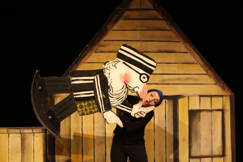 Prokofev ha scritto la sua fiaba musicale con un preciso scopo educativo: far conoscere ai bambini gli strumenti dell’orchestra, il loro suono e il loro carattere espressivo. Per questo ha associato ad ogni strumento un personaggio e un particolare motivo musicale. La voce narrante dello spettacolo, “il Grande Narratore “, è la voce di Dario Fo che, con il suo genio teatrale, rivisita la fiaba originale ridonandole una nuova giovinezza. Sulla scena i tre attori utilizzano lazzi e gags per costruire un ponte fra la storia e il pubblico. La loro confusione diviene pretesto per puntualizzare e sottolineare passaggi didattici importanti. Il meccanismo di complicità con il pubblico fa in modo che siano i bambini stessi a spiegare, interpretando il ruolo di insegnanti per questi tre alunni poco studiosi. Ogni piccolo spettatore può quindi, nei momenti di interazione, dare aiuto, chiarificazioni e suggerimenti, divenendo così protagonista di un percorso di apprendimento.