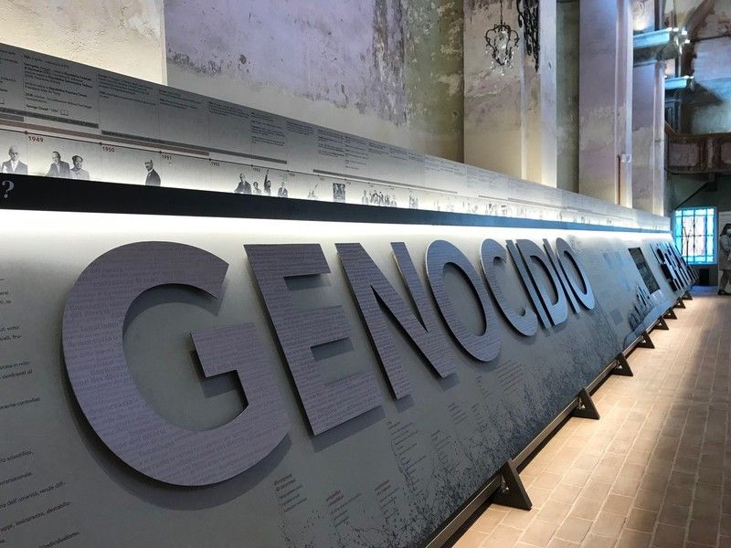L’allestimento si trova all’interno della ex chiesa di Sant’Anna, a lato del Memoriale della Deportazione realizzato 15 anni fa nell’ambito del progetto Interreg “La memoria delle Alpi”, a pochi passi dalla stazione ferroviaria dalla quale partirono i convogli verso i campi di sterminio nazisti.