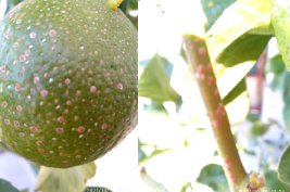 Ho visionato le 2 foto, si tratta di un attacco di Aonidiella auranti ovvero Cocciniglia rossa forte degli agrumi che con le sue punture può portare danni considerevoli alle piante. Per risolvere il problema Le consiglio di effettuare 4 trattamenti a distanza di 3-4 giorni con Corroborante Praesidium BioDea alla dose di 35 ml ogni 10 litri di acqua con in aggiunta sapone molle di potassio e alcool etilico entrambi diluiti all1%. Successivamente ci faccia sapere.