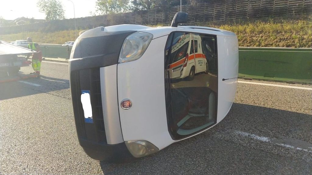 Furgoncino si ribalta sulla tangenziale nord, all'altezza dell'uscita di Venaria: traffico in tilt