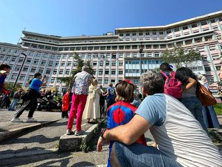 Lacrime, emozione, sorrisi. E’ un calore immenso quello che supereroi, bimbi, genitori e torinesi hanno voluto portare a Mirko, bimbo ricoverato al Regina Margherita per un tumore. Mirko è un malato terminale: ha il sarcoma di Ewing. Le speranze di riuscire a vincere la battaglia dura sono pochissime. Ma i supereroi insegnano che c’è sempre un po’ di speranza in cui credere. E almeno per qualche minuto, con tutta la forza data dai torinesi, è bene pensare che sia cosi.