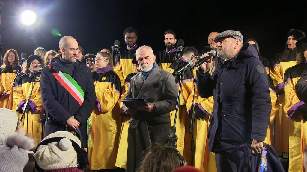 Qui, li ha accolti il canto del gruppo Sunshine Gospel Choir, tra i più importanti gruppi gospel italiani, e poi, il sindaco Fabio Giulivi, le assessore alla Cultura, Marta Barbara Santolin e al Commercio ed Eventi, Monica Federico, con l’Amministrazione comunale, i rappresentanti del Consorzio delle Residenze Reali Sabaude, il presidente della Fondazione Via Maestra, Diego Donzella e il direttore Mirco Repetto, porteranno i saluti e daranno il via al countdown, al termine del quale si sono accese le proiezioni artistiche sull’intera piazza Annunziata, curate dall’artista francese di origini italiane Gaspare Di Caro (tra le sue opere più note l’intervento artistico sul Cristo Redentore a Rio De Janeiro) e insieme, si sono accese tutte le luminarie in Città. Da lì si è poi passati in piazza Repubblica, dove si darà il via al video mapping, curato sempre da Gaspare Di Caro.