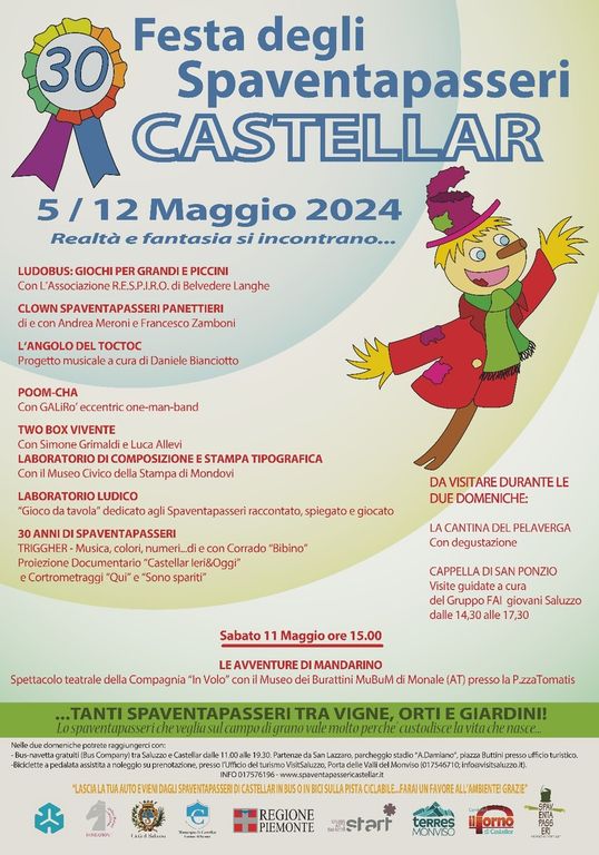 Da non perdere, durante le giornate di festa, la visita alla Cappella di S.Ponzio guidata dal Fai giovani di Saluzzo, e la visita alla cantina del Pelaverga, vino tipico del territorio. Castellar, un mix perfetto di storia, arte, cultura, tradizioni e divertimento, vi aspetta dunque con i suoi fantastici Spaventapasseri!