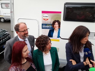 È iniziato questa mattina davanti allo stabilimento di Mirafiori il tour in camper organizzato dal Movimento Cinque Stelle a sostegno di Sarah Disabato nella sua corsa alla presidenza della Regione Piemonte. A bordo, i parlamentari Chiara Appendino, Antonino Iaria ed Elisa Pirro visiteranno tutte le province della Regione per portare il messaggio del Movimento 5 Stelle nelle varie piazze e confrontarsi con i cittadini.
