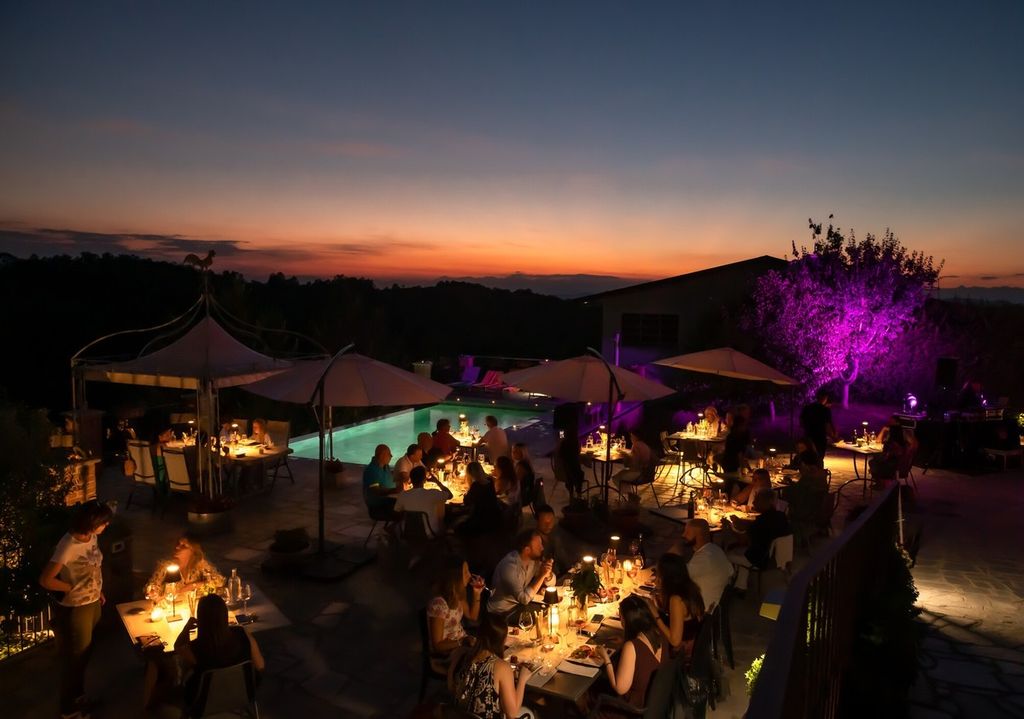 Casa Serra Eco-Resort & Wellness offre un’atmosfera magica dove la bellezza naturale si fonde con il piacere della buona tavola. La serata è arricchita da una curata selezione enologica e dalla musica che accompagna i partecipanti, creando un ambiente ideale per trascorrere momenti di relax e convivialità sotto il cielo stellato.