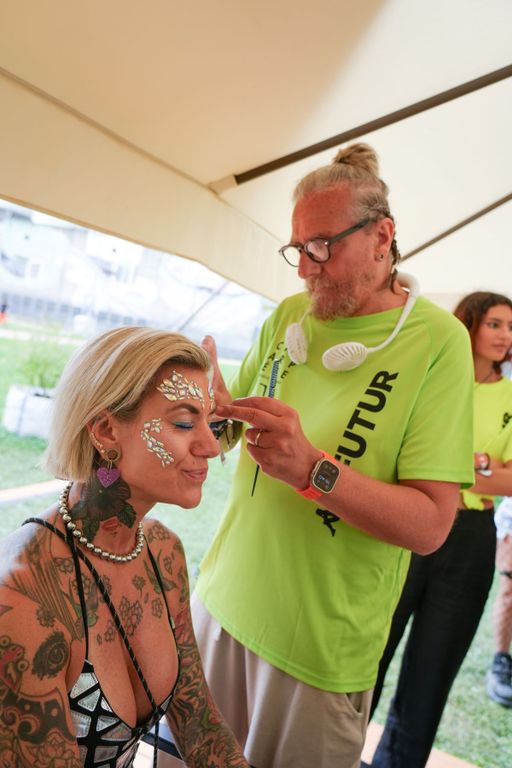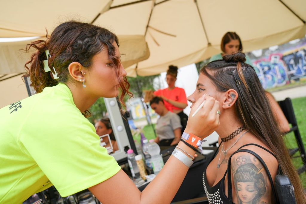 Per il make-up voglia di luce, di divertimento leggero e trendy: migliaia di brillantini, gemme colorate e pailettes - accompagnati da eyeliner fluo e glitter - hanno definito il look degli ospiti della Vip lounge permettendo a ciascuno di personalizzare la propria immagine “da festival”. Ad applicarli, il team dei più di 50 giovani make up artist MBA Making Beauty Academy di Torino e Milano coordinati coordinati dai makeup artist pro Erika Romaniello, Claudia Pelle e Marco Piras. Gradita interprete di makeup inclusivo ad alta creatività, la talentuosa drag queen Elektra Bionic, vincitrice della prima edizione di Drag race Italia.