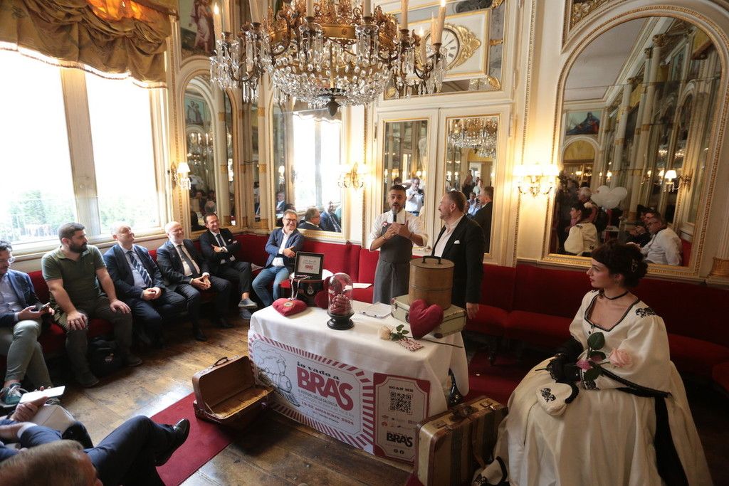 Nell’elegante contesto di Piazza Carignano, all’interno della sala Risorgimento del noto ristorante torinese, è stata servita una degustazione attraverso una serie di abbinamenti con i prodotti braidesi per eccellenza: a partire dal cubo di riso con salsiccia di Bra, dal “Rocher” di salsiccia di Bra e pistacchi al pomodoro piccadilly con salsiccia e formaggio di Bra Dop, passando poi per la salsiccia in gelatina di peperoni, combinando un’altra eccellenza del territorio, quel peperone di Carmagnola celebrata in questi giorni nella Fiera Nazionale in corso fino all’8 settembre.