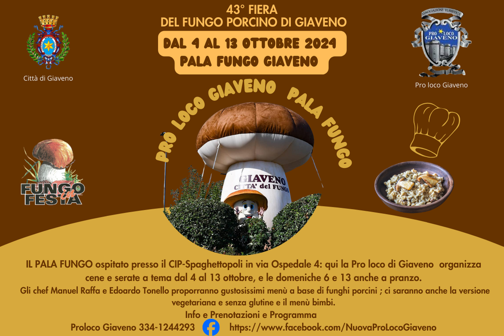 Facebook “Giaveno Città del Fungo” : https://www.facebook.com/fungoinfesta