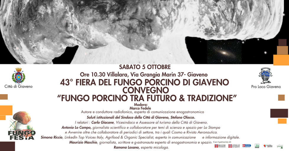 Sabato 5 ottobre con il 4° convegno “Fungo Porcino di Giaveno”: il tema trattato in questa edizione sarà “Fungo Porcino tra futuro e tradizione” .