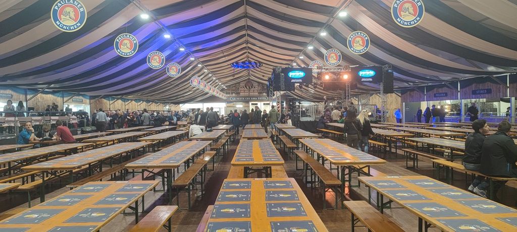 Per l'inaugurazione, una degustazione di birra dopo i saluti istituzionali, con l'assessore al commercio Paolo Chiavarino che ha aperto la prima botte di Paulaner, e a seguire il primo pranzo nel padiglione di 3.000 metri quadri che può ospitare fino a 2.500 posti a sedere, più altri 500 nel Beer Garden all'aperto.