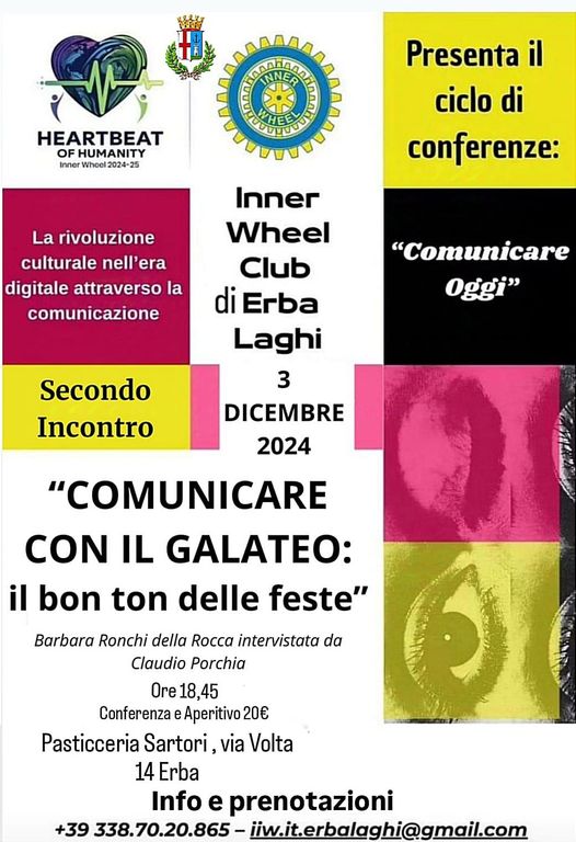 L’appuntamento organizzato dall’Inner Wheel Club di Erba Laghi è per martedì 3 dicembre alle 18.45 presso la sala conferenza della Pasticceria Sartori in via Volta n.14 a Erba (info e prenotazioni al numero 338.7020865)