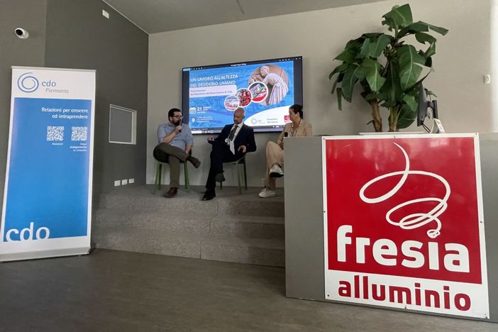 Il dibattito ha avuto luogo dopo la visita alla storica azienda leader nella progettazione e commercializzazione di sistemi ecosostenibili per serramenti in alluminio ad alta efficienza energetica guidata da Cristina Fresia, amministratore delegato della realtà economica con una storia lunga più di 50 anni. La sua visione imprenditoriale, che coniuga innovazione, sostenibilità ambientale e valorizzazione del capitale umano, ha reso Fresia Alluminio un modello di successo nel panorama industriale italiano.