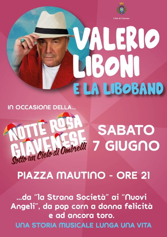 Ospite speciale in piazza Mautino: Valerio Liboni con la Libo Band: autore di celebri brani della musica italiana, che ha iniziato la sua carriera di musicista, batterista, cantautore e compositore italiano proprio qui a Giaveno nella seconda metà degli anni Sessanta.