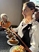 Tra le portate servite: ostrica fritta con bisque di gamberi e salsa al caramello; carpaccio di tonno con fichi freschi, cipolla in agrodolce e salsa alle foglie di fico; risotto ai gamberi di Sanremo e tartufo nero; tagliolino con gamberi, zafferano e fiori di zucchina.