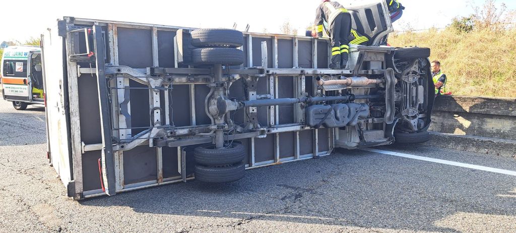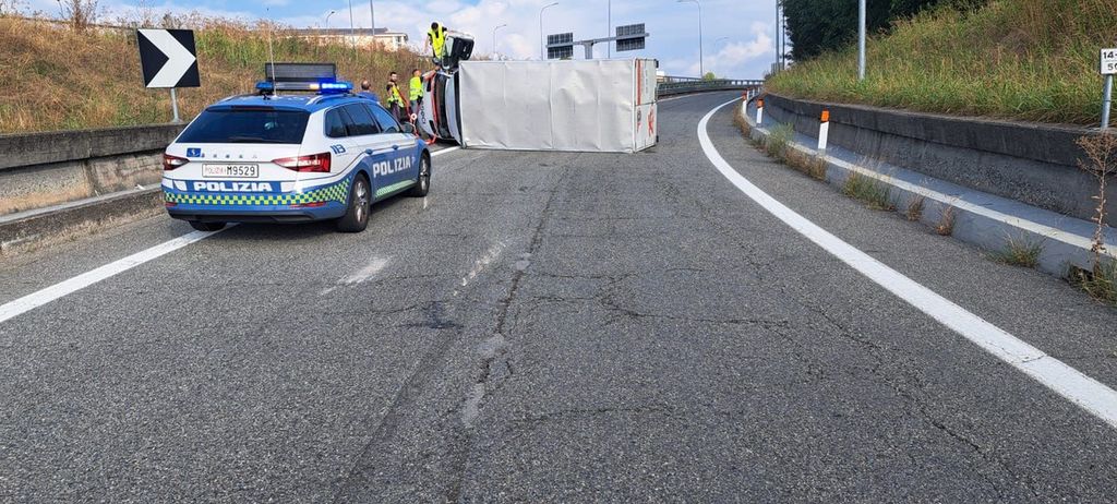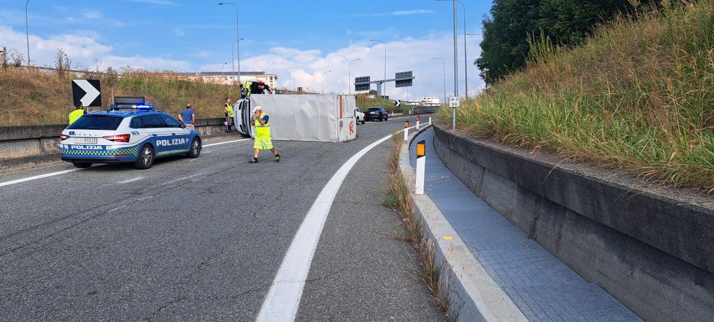 Furgone si ribalta sullo svincolo di Venaria Reale, caos in tangenziale
