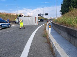 Furgone si ribalta sullo svincolo di Venaria Reale, caos in tangenziale