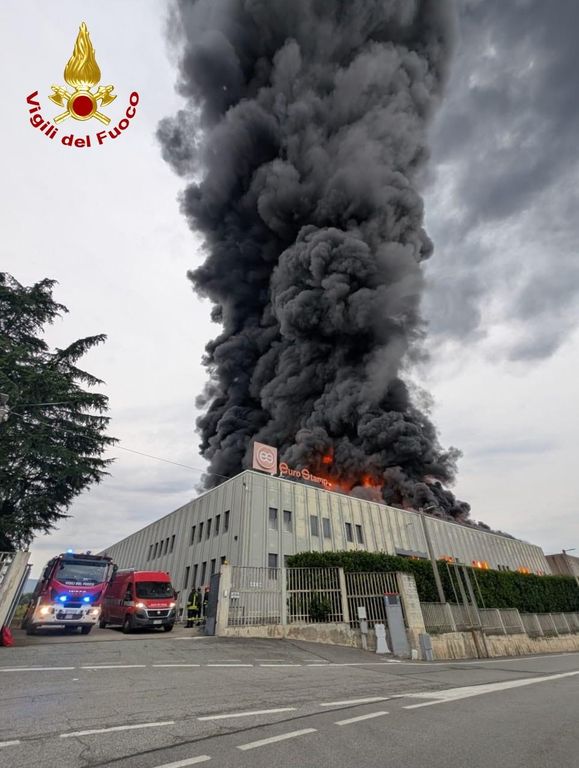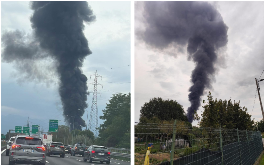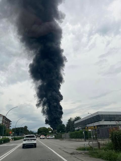 Una grossa colonna di fumo nero visibile dalla tangenziale. Ancora sconosciute le cause. Potrebbero essere andate a fuoco sostanze tossiche