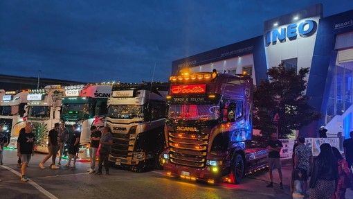 Clacson, trombe, luci, neon, casse, fanali e led: camion in festa sabato e domenica scorsi per gli Ineo Days, organizzati dalla società di servizi dell'autotrasporto di Cuneo in via della Motorizzazione.
