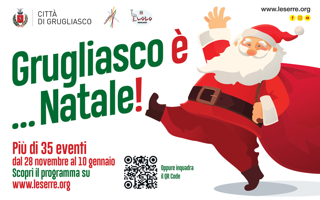 La Società Le Serre organizza per conto dell’Amministrazione Comunale la prima edizione di "Grugliasco è… Natale!", un programma ricco di eventi, pensati per riscaldare i cuori e per trasformare ogni angolo della città in uno spazio di condivisione, bellezza e accoglienza.