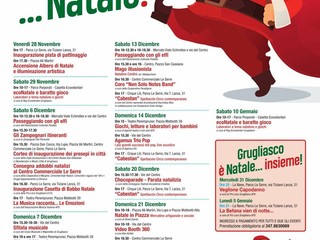 Tutta la città sarà protagonista della prima edizione di "Grugliasco è… Natale!", con iniziative specifiche che coinvolgeranno non solo il centro ma anche le borgate con "Grugliasco è Natale… in borgata".